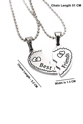 Yellow Chimes 2 PCS Combo Best Friends Carved Heart Locket Necklace Chain Pendant
