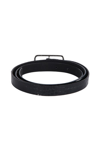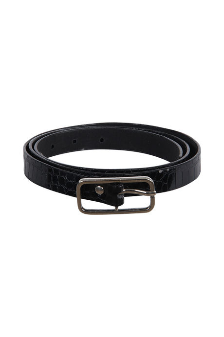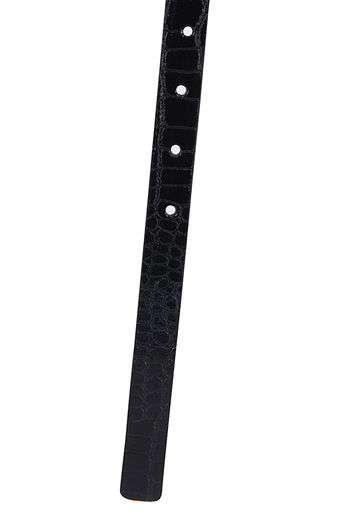 Zivame Croc Finish Thin Leatherette Belt- Black