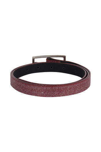 Zivame Croc Finish Thin Leatherette Belt- Brown