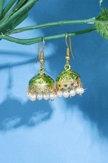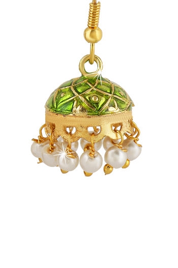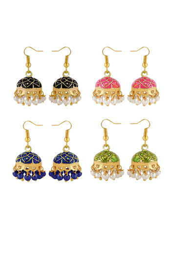 Yellow Chimes 4 Pairs of Meenakari Handcrafted Traditional Gold Plated Jhumka/Jhumki Earring