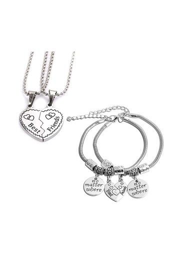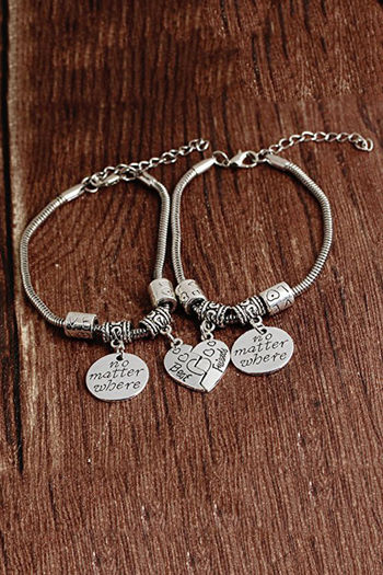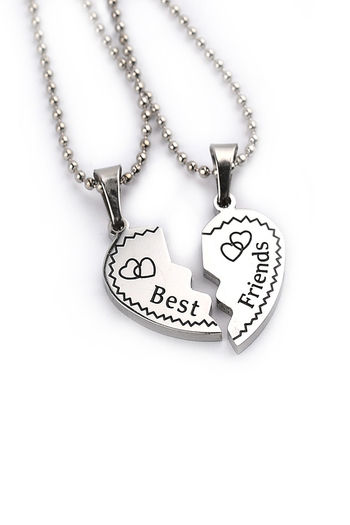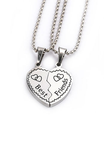 Yellow Chimes 4 PCs Combo Best Friends Forever Silver Plated Heart Charm Couple Bracelet Pendent