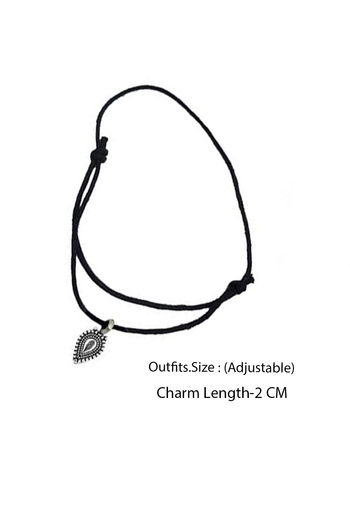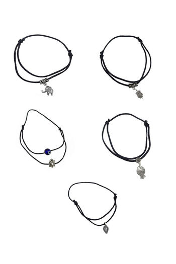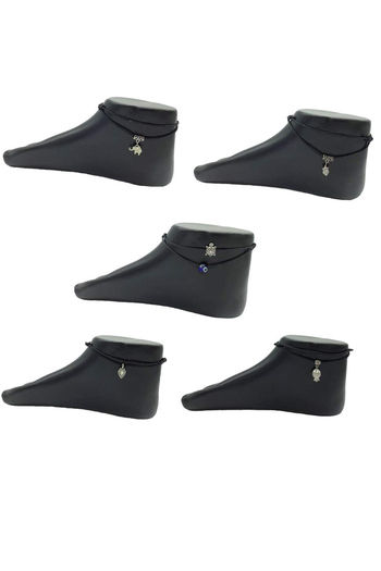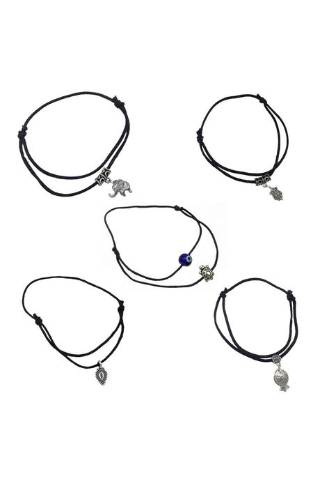 Yellow Chimes 5 Pcs Combo Black Thread Knot with Oxidised Single Charms Adjustable Evil Eye Anklets