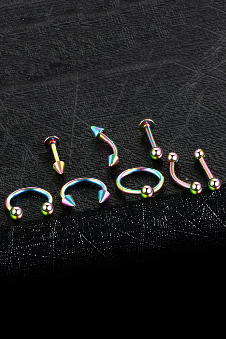 Yellow Chimes 8pcs Set Stylish Helix Piercing Ear Eyebrow Nose Lip Stainless Steel Cartilage Body Jewelry