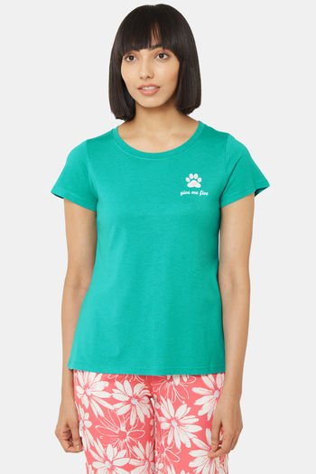Buy Red Rose Cotton Night Dress - Green
