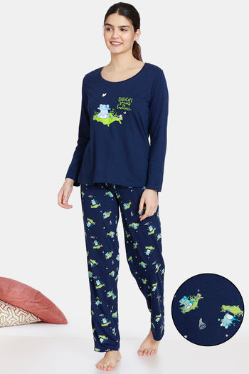 Buy Zivame Groggy Froggy Cotton Pyjama Set - Medieval Blue