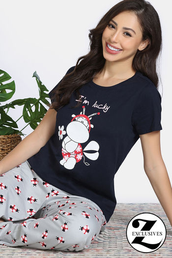 Buy Zivame Farm Lore Knit Cotton Pyajama Sets - Navy Peony