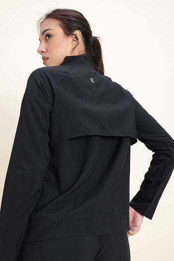 1. Monochromatic Athleisure: Create a chic athleisure look by pairing a black ladies’ sports jacket with black leggings or joggers. Add a white or grey tank top underneath for contrast and complete the outfit with sleek sneakers. Check Easy Movement Relaxed Jacket in black on Zivame to create this look.