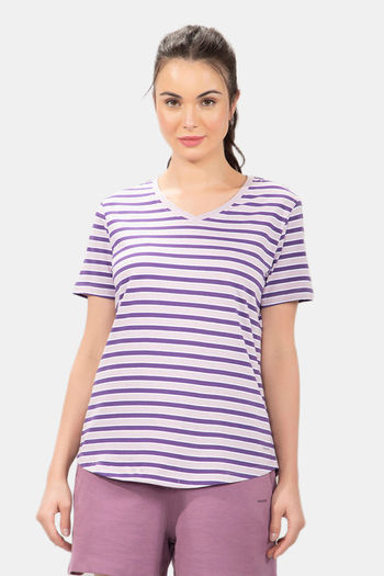 Amante Essential V-Neck Stripe Tee - Violet Stripes