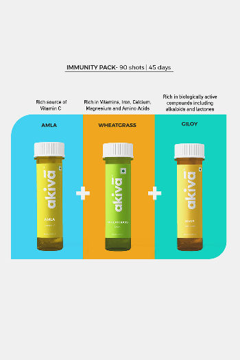 Akiva Immunity Pack With Gilory Amla & Wheatgrass 90 shots 45 days ( Pack of 90) - Assorted