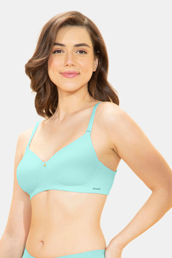 Amante Breathable Easy Padded Wired Cotton Bra - Soothing Sea