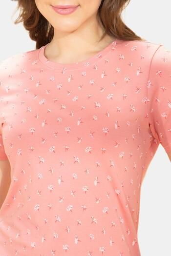 Amante Scoop Neck Sleep Tee - Coral Floral Print