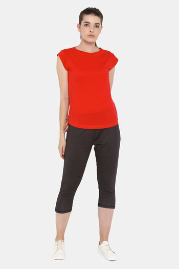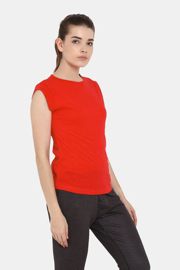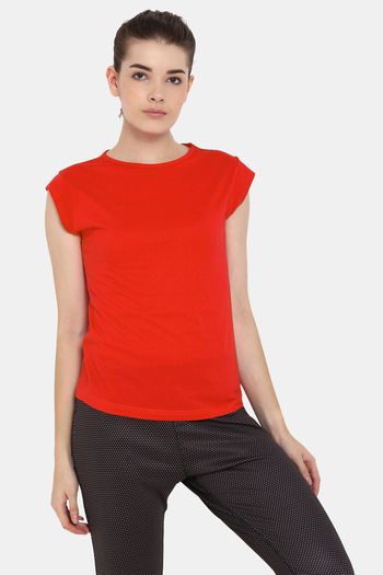 Appulse Cotton Cap Sleeve Round Neck Sports T-Shirt - Red