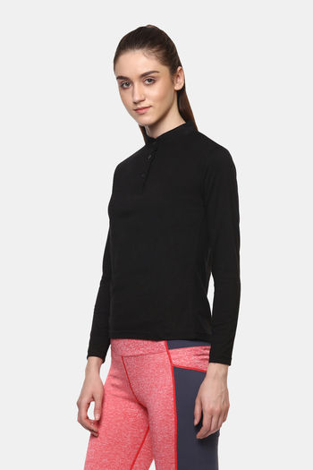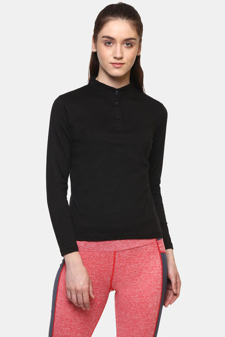 Appulse Cotton Long Sleeve Mandarin Collar Sports T-Shirt - Black