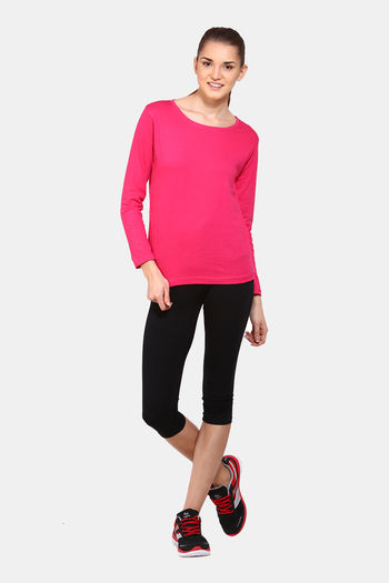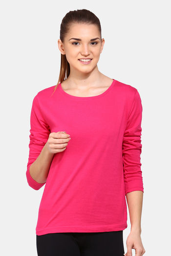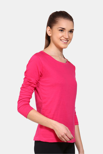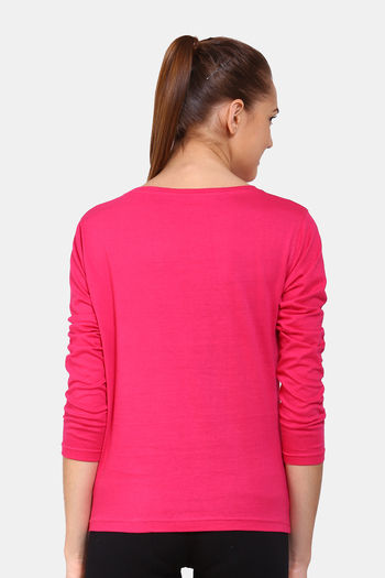 Appulse Cotton Long Sleeve Round Neck Sports T-Shirt - Dark Pink