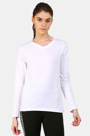 Appulse Cotton Long Sleeve V-Neck Sports T-Shirt - White