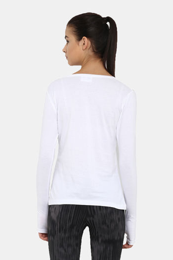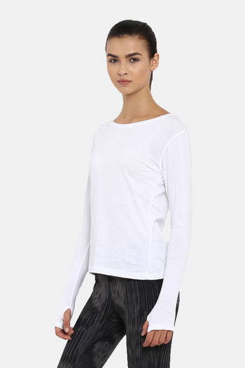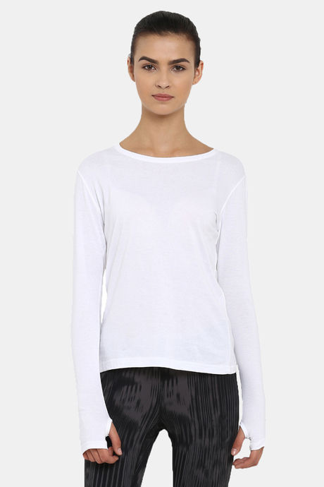 Appulse Cotton Thumbopen Long Sleeve Round Neck Sports T-Shirt - White