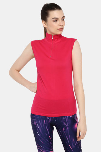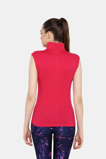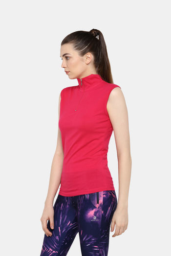 Appulse Cotton Sleeveless High Neck Sports T-Shirt - Dark Pink