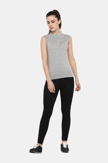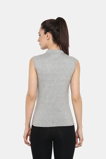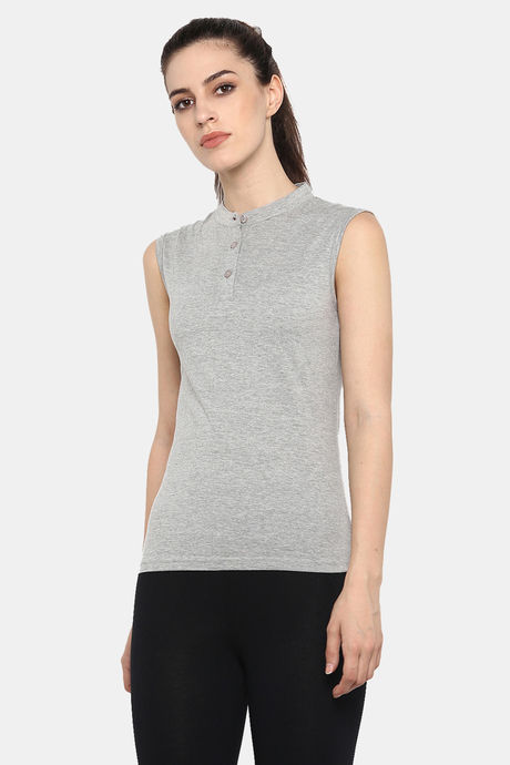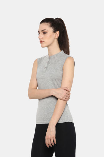 Appulse Cotton Sleeveless Mandarin Collar Sports T-Shirt - Grey Melange