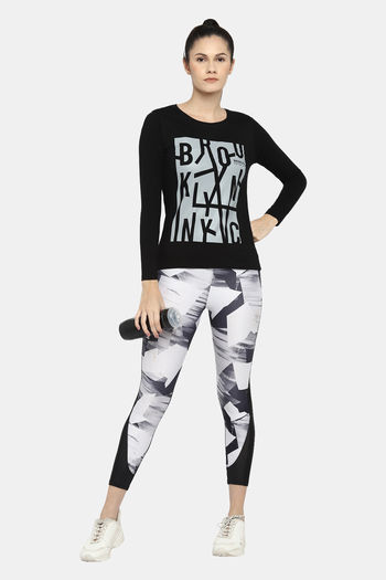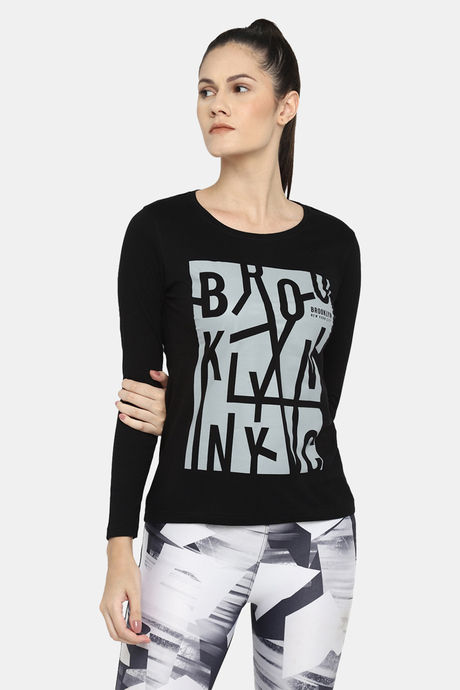 Appulse Cotton Long Sleeve Round Neck Sports T-Shirt - Black
