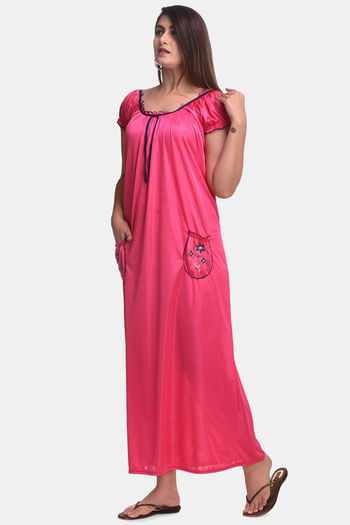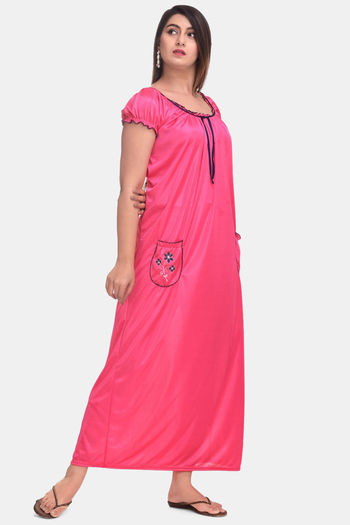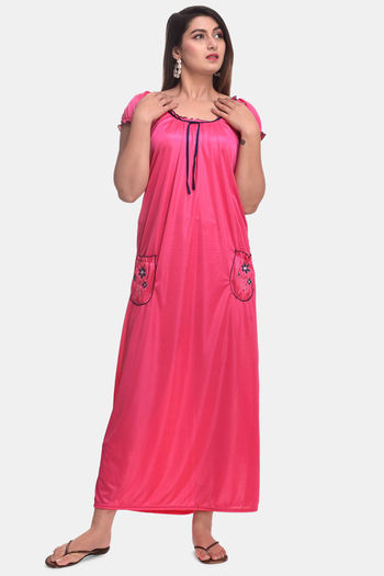 Apratim Satin Full Length Nightdress - Pink