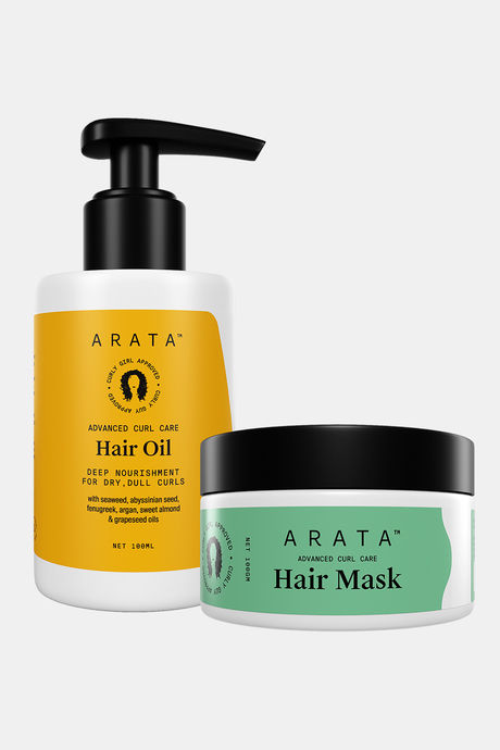 Arata Advanced Curl Care Hair Oil (100 Ml) & Arata Advanced Curl Care Hair Mask (100 Gm) | Intensive Nourishment For Dry, Dull Curls | With Natural Oils, Hyaluronic Acid, & Shea Butter | Cg Approved