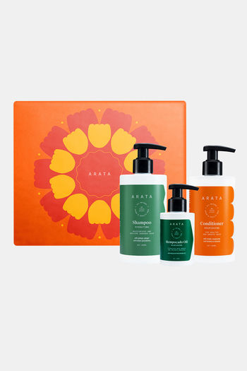 Arata Natural Complete Hair Care Daily Scalp Therapy Gift Box For Men & Women || Hydrating Shampoo (300 Ml), Hempocado Oil (100 Ml), Conditioner (300 Ml)|| All Natural, Vegan & Cruelty-Free || Plant-Based, Non-Toxic Bath