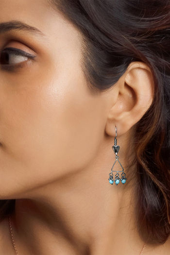 AVNI by Giva 925 Oxidised Silver Turquoise Bead Triangle Earrings