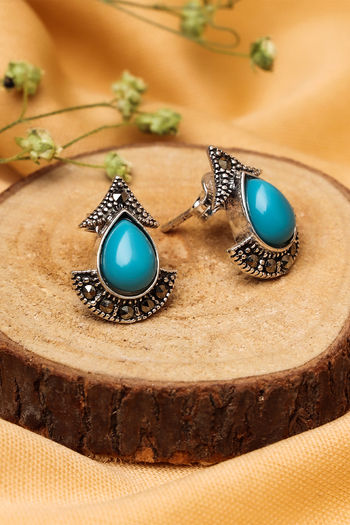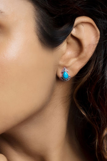 AVNI by Giva 925 Oxidised Silver Turquoise Studs