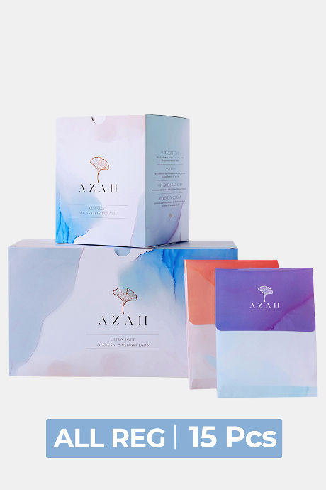 Azah Ultra-Soft Organic Sanitary Pads (Box of 15 pads : Regular Size - Pack of 2) - White