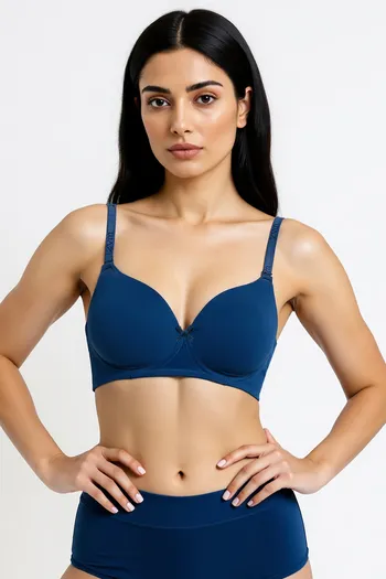Zivame Padded Non Wired 3/4Th Coverage T-Shirt Bra - Sargasso Sea