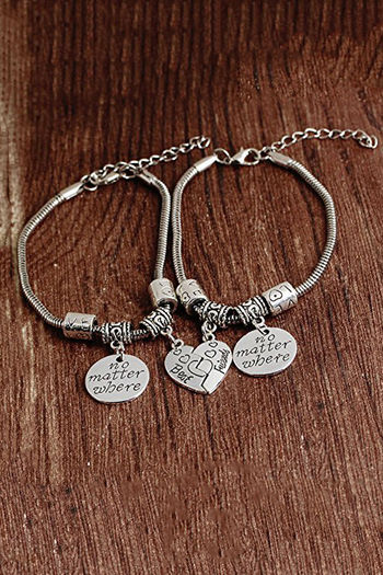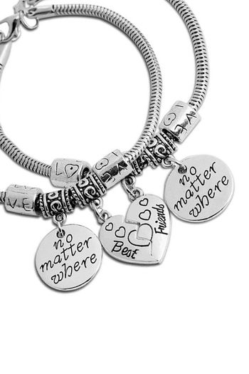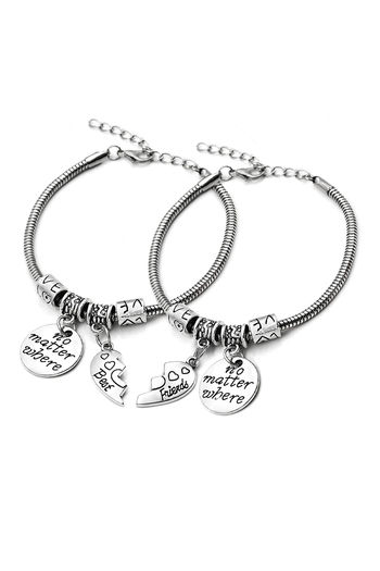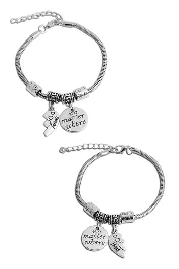 Yellow Chimes Best Friends Forever Silver Plated 2 PCS Heart Charm Bracelet