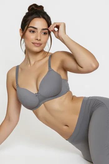 Zivame Padded Non Wired 3/4Th Coverage T-Shirt Bra - Lava Smoke