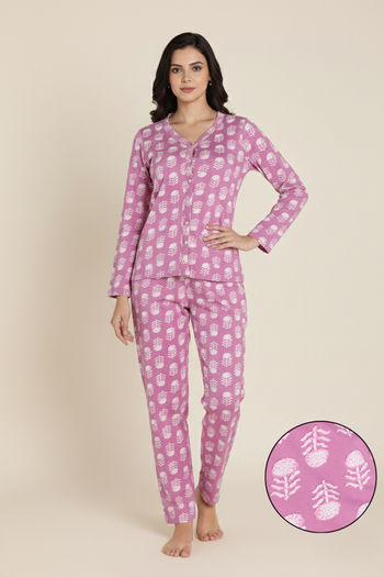 Buy Zivame Knit Cotton Pyjama Set - Orchid