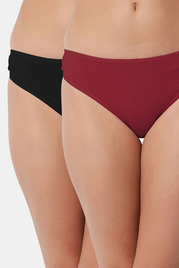 Bleeding Heart Low Rise Zero Coverage Thong (Pack of 2) - Black Maroon
