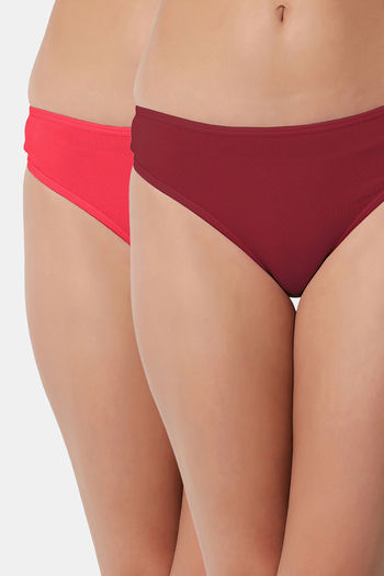 Bleeding Heart Low Rise Zero Coverage Thong (Pack of 2) - Coral Maroon