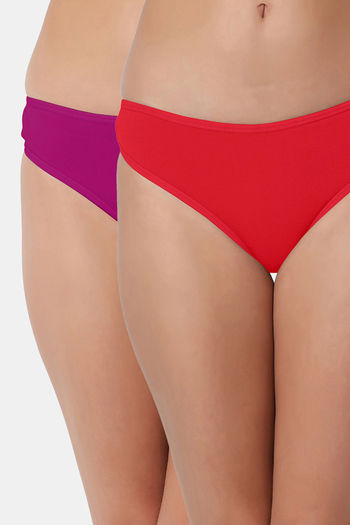 Bleeding Heart Low Rise Zero Coverage Thong (Pack of 2) - Purple Red