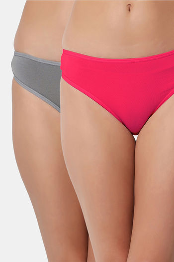 Bleeding Heart Low Rise Zero Coverage Thong (Pack of 2) - Magenta Grey