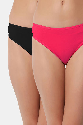 Bleeding Heart Low Rise Zero Coverage Thong (Pack of 2) - Black Magenta