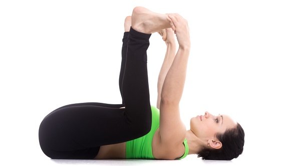 – Spread out your thighs and raise your knees up, holding your feet or big toe