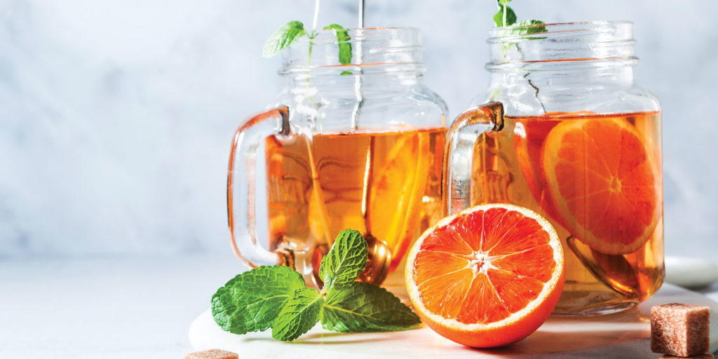 Your good ol’ orange juice gets a sassy upgrade for lazy summer afternoons; all hail orange slices soaked in iced, black tea brewed to perfection. With a tiny drop of sweetener- honey or simple syrup- she’s ready. Her essence taking over the sun, her ombre orange hue, a sight for sore eyes.
