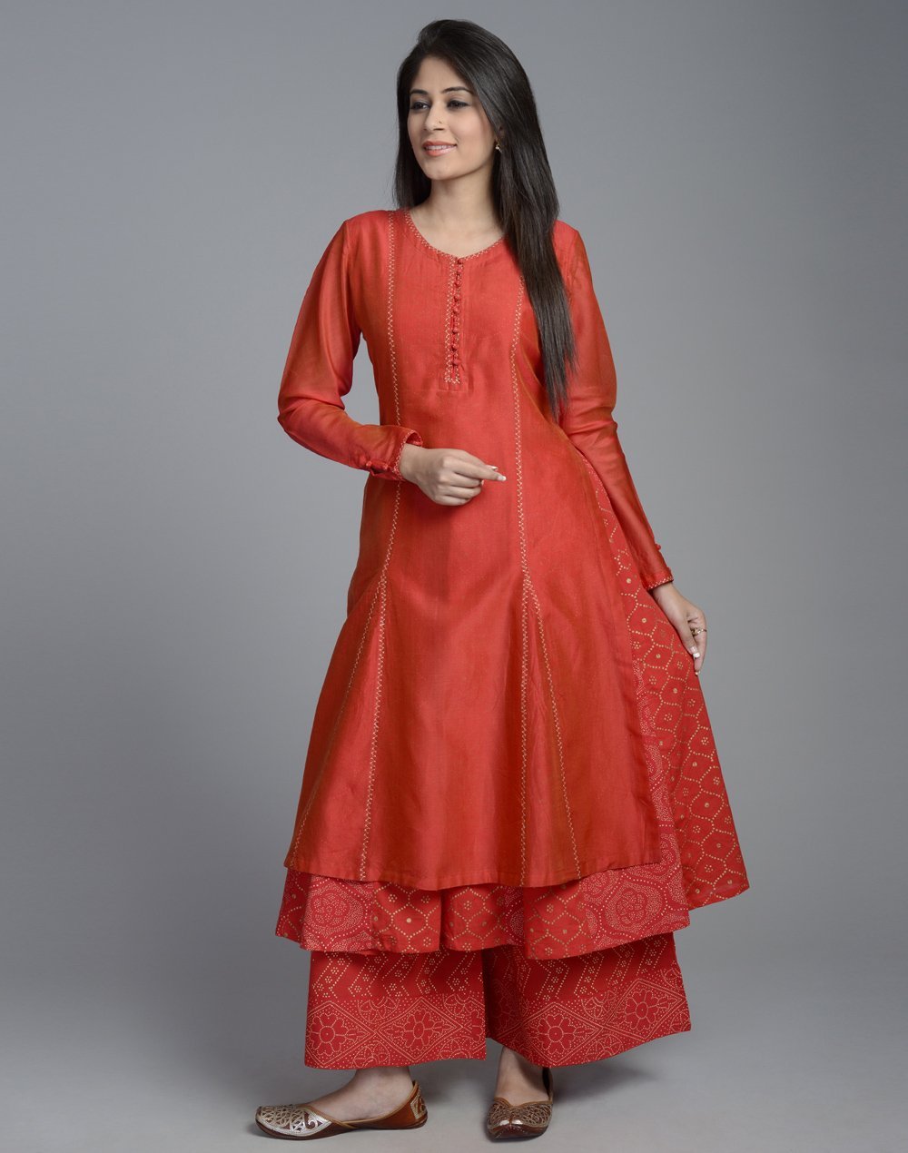 Love layering up your daily outfits? Here’s a kurta that does all the work for you! With layered hemlines that make it look like you’re wearing two tunics of different lengths, it is a fabulous choice for parties with an ethnic dress code. Wear this gorgeous kurta with matching straight-fit or palazzo pants and you just might be able to trick your friends into believing you’re wearing a three-tier gown!