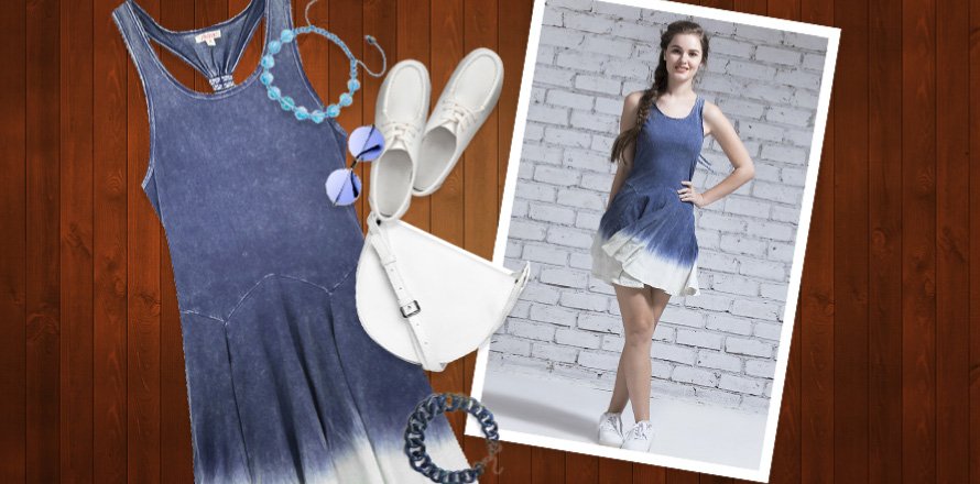 Denim dresses are all the rage right now, and they can be easily teamed up with white sneakers! Wear this ombre faux-denim dress with your favourite white kicks and layer on some accessories to brunch in style!