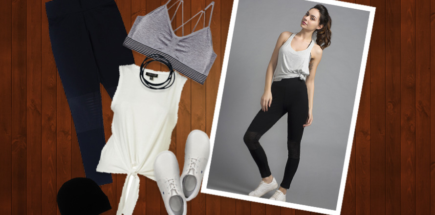 A bona fide style staple, black leggings can be paired with a loose tank top and peek-a-boo bralette for the ultimate sporty-chic attire. To take it up a notch, slip on those white sneakers to complete the look!