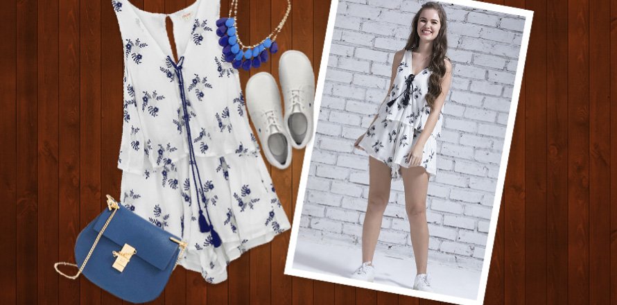 In search of the perfect summer party outfit? This floral printed playsuit is just what you need! Style it with pretty accessories and all-white shoes – it’s time to take a much needed break from those sky-high heels!