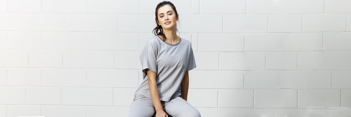 Choose a Medium-impact Sports Bra, a relaxed fit Tee and Leggings to get started. These clothes will keep you comfortable during your practice and a good Sports Bra will give you adequate coverage while containing bounce.