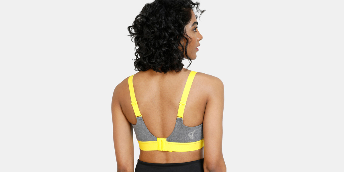How incredible is this High Impact Sports Bra in grey and yellow? It is the perfect way to introduce some colour in your Dance/Zumba wardrobe. This Sports Bra gives you high coverage along your neckline and sides combined with a bounce-free experience. It is lightweight, soft, wrinkle-free and durable- everything you need in the perfect Sports Bra!
