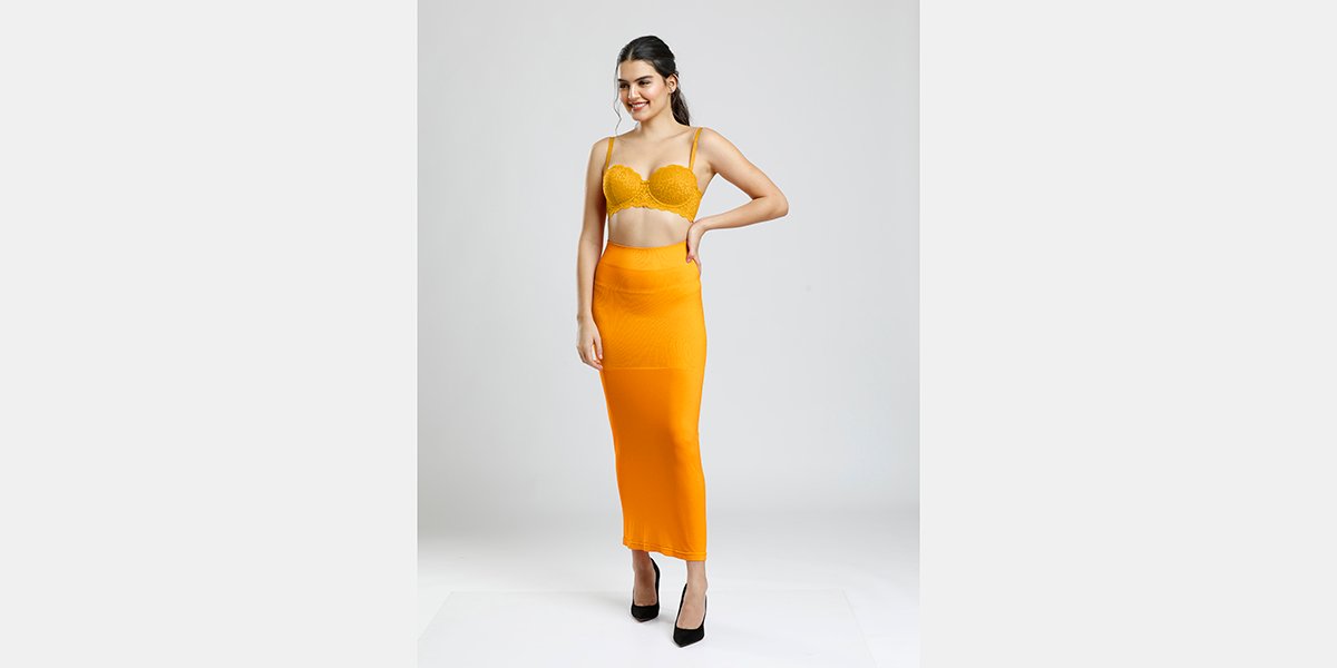For long-length dresses that show off your curves, consider the Saree Shapewear (a shaping skirt) with remarkable thigh shaping abilities. It cinches in your tummy and keeps your thighs firm so there is no unwanted jiggling! It is the perfect under-skirt to pair with gowns, long dresses, sarees, and long skirts.