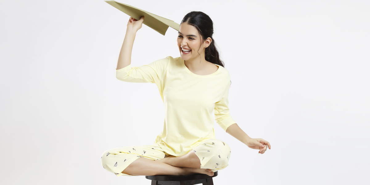 Zivame Paper Town Capri Set: Check out this Capri Set that gives you the perfect coverage- not too long and not too short, but just the right length! This set comes with a plain top and a paper plane printed Capri which will remind of all your fun childhood memories. This ultra-comfortable Capri set is made of 100% cotton and is the best bet for India’s tropical weather.