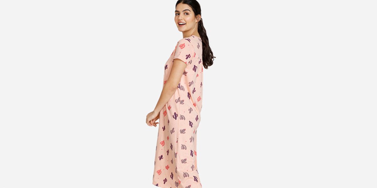 Zivame Texas Dreaming Nightdress: If you are looking for playful and fun prints, look no further than this cute mid-length Nightdress. These quirky cactus prints will remind you of the dreamy Texan landscape, and the happy, summery colours will instantly put you in a good mood. This printed Nightdress is made of knit cotton and has a comfortable, relaxed fit making it ideal for afternoon naps or evening chai sessions with the family.