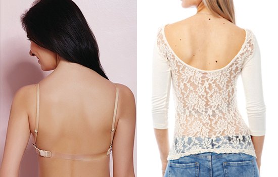 Be it tops with net shoulders or lacy backs, sheer fabrics have taken over party wear. A transparent back bra or one with clear shoulder straps is the perfect lingerie choice for see-through material and revealing styles.